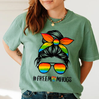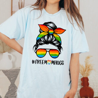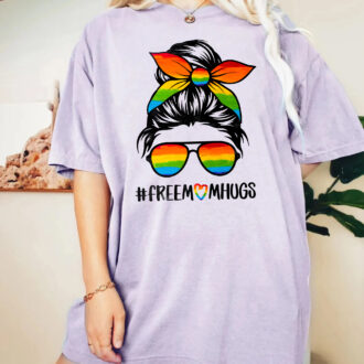 LGBT Mom Pride Shirt, Free Mom Hugs, Proud Rainbow Mama Tee, Gay Lesbian Mom Apparel